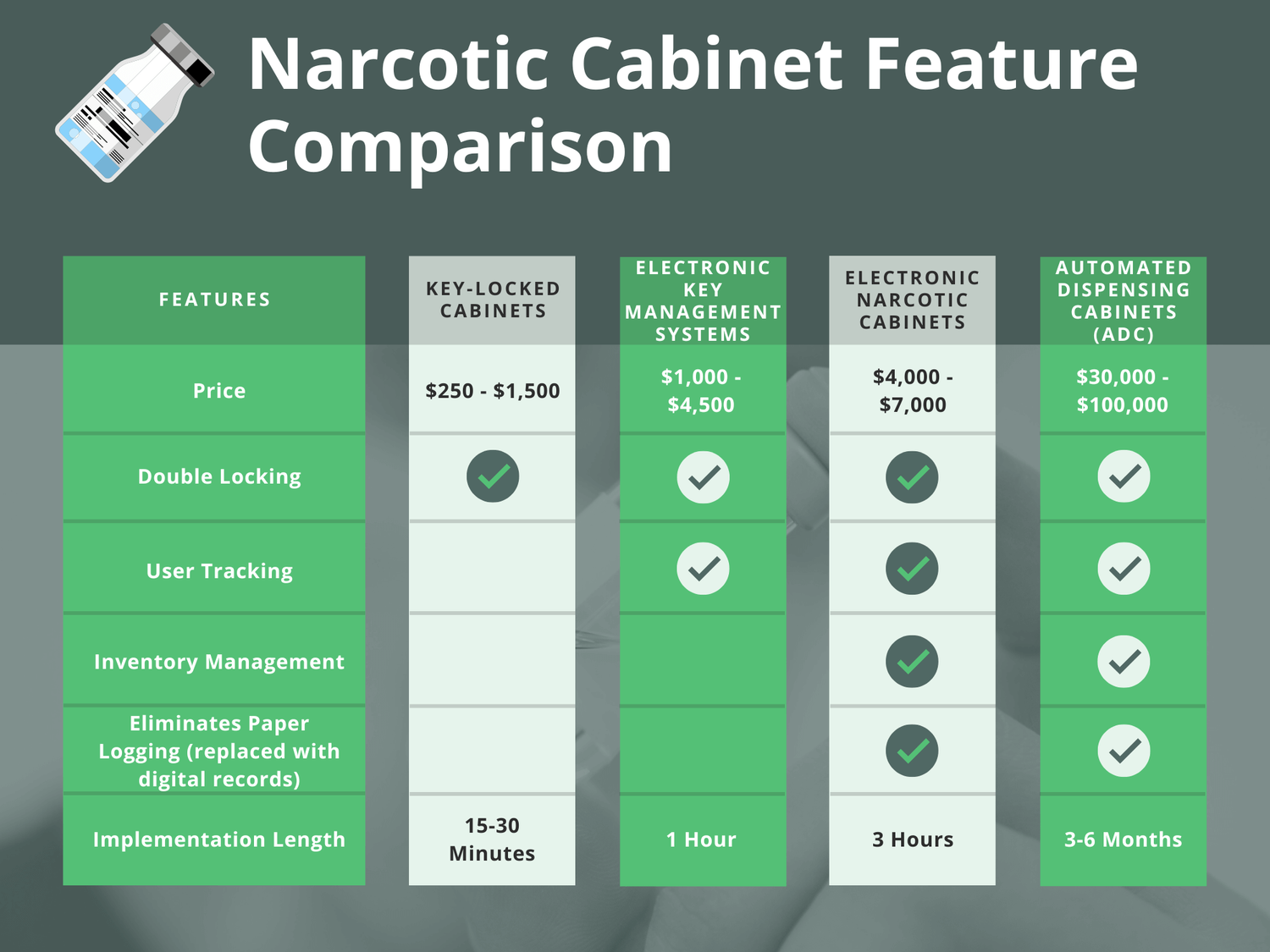 Admittedly, we understand how critical we sound about key-locked cabinets right now. But it’s important to be wary of their deficiencies. Most users of key-locked systems understand where the cabinets fall short. In the past, there weren’t many other options available because the electronic options were much too expensive and designed for the hospital setting. However, in recent years, this has begun to change. More affordable alternatives have entered the market. But again, for very small operations with only 2 to 5 staff members, key-locked systems can sometimes be the best bet.